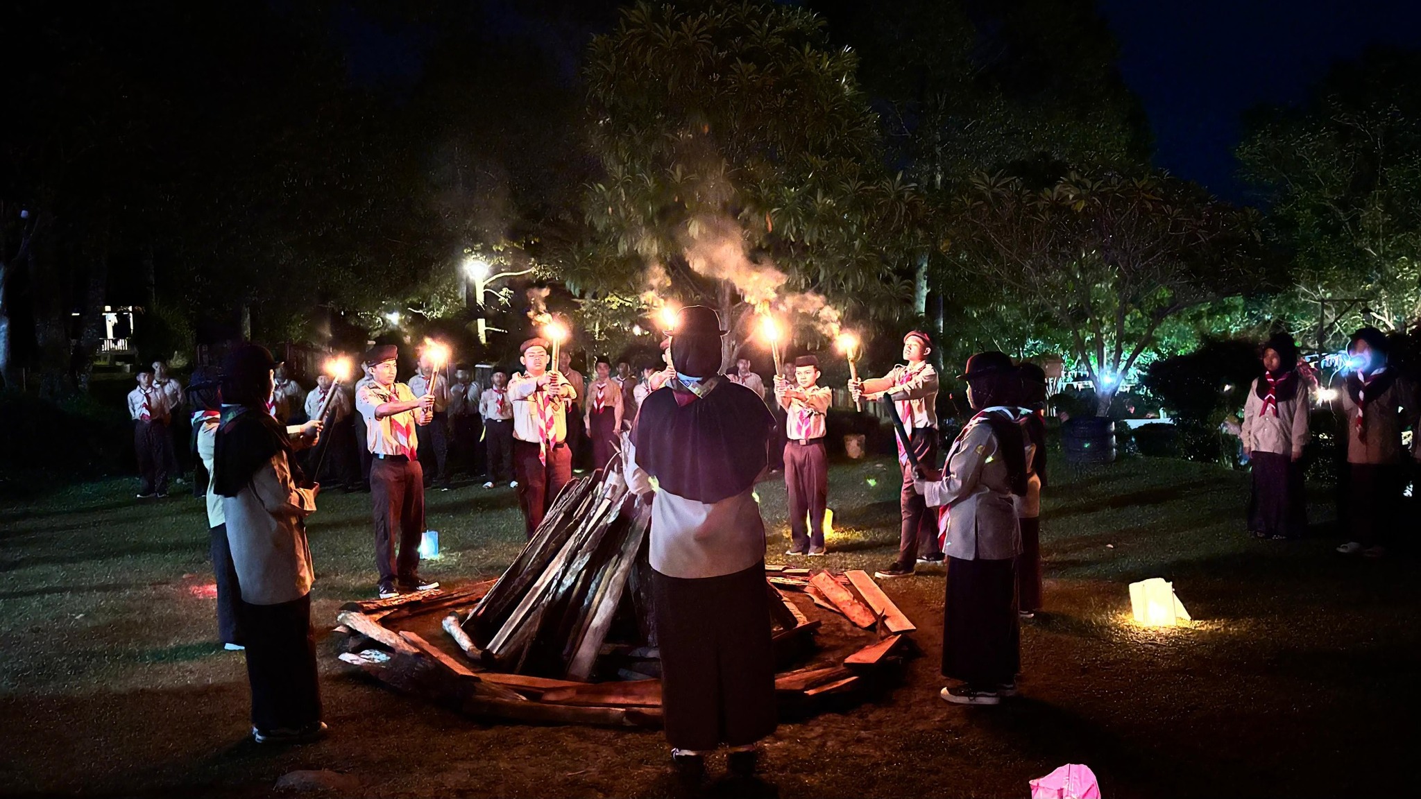 Upacara pembukaan yang semula direncanakan di lapangan akhirnya dilaksanakan secara terbatas di pendopo, dipimpin langsung oleh para pembina Pramuka dan disambut antusias oleh seluruh peserta.