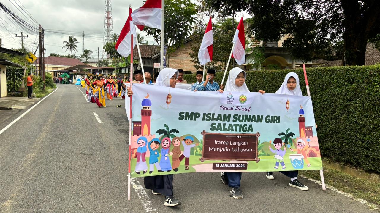 Salatiga, 18 Januari — Kontingen SMP Islam Sunan Giri Salatiga kembali menorehkan prestasi membanggakan dalam kegiatan Pawai Ta’aruf yang diselenggarakan pada 18 Januari. Dalam ajang yang diikuti berbagai peserta dari sejumlah sekolah dan lembaga pendidikan ini, SMP Islam Sunan Giri tampil penuh semangat, kreatif, dan kompak, hingga berhasil meraih Juara 1 Pawai Ta’aruf.
